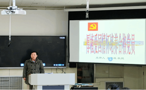 为全面贯彻落实党的教育方针,加强大学生爱国主义教育,437bwin必赢国际官网和离退休人员工作部党委(校关工委办公室)于11月26日举办了以“厚植爱国情怀,培养合格党员”为主题的爱国主义教育讲座,邀请校关工委委员、退休教师王季桃教授主讲,437bwin必赢国际官网党委副书记郝志鹏主持,学院100余名入党积极分子参会。