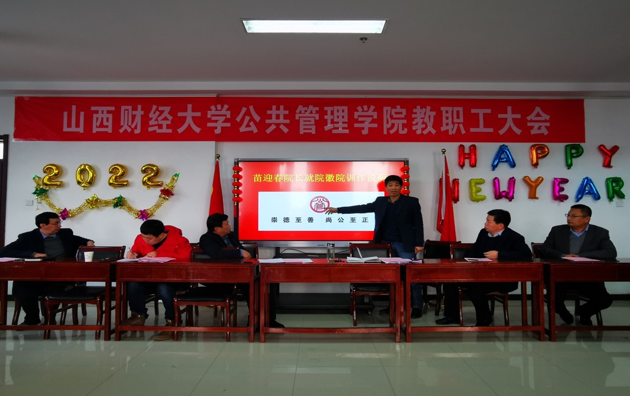 会上,苗迎春围绕人才培养、师资队伍、科学研究与服务社会、开放办学与改革发展、党建思政与安全稳定、服务效率与治理效能等方面对2021年工作做了总结;就2022年学院重点工作做了安排;通报了2021年年度考核、绩效分配等相关事项;对学院的院徽设计方案和院训进行了阐释说明。梁兴凯就《437bwin必赢国际官网教职工关怀“五必访”制度(讨论稿)》做了说明。院工会主席段宇波就2021年工会工作和会费使用情况做了说明。