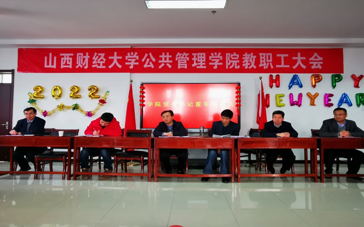 学院党委书记董军伟围绕学院全面贯彻学校第三次党代会精神、学校六届四次“双代会”精神,聚焦学校发展战略,落实办学思路,全面实施“12333”工程(即:一个核心—人才培养质量;两翼齐飞—学科建设和专业建设;三驾马车—师资队伍、科学研究和服务地方;三足鼎立—课程建设、教材建设和案例建设;三个保障—党建引领、三全育人和高质量管理),奋力谱写山财高质量发展的“公管新篇章”做了总结讲话。