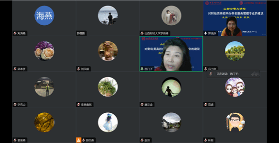 南开大学翟磊老师以南开大学城市管理专业为例,详细讲述了南开大学申报城市管理专业的过程,介绍了南开大学城市管理专业的培养特色、课程设置及毕业去向。详细展示了国内代表性院校城市管理专业的专业定位、专业特色和培养模式。从师资队伍、教材建设、课程体系、实验室建设4个方面对财经类院校申办城市管理专业提出了宝贵建议。各位老师与翟磊老师就城市管理专业与城市规划专业的区别、非一流院校城市管理专业毕业生在山西就业前景、财经类院校申办城市管理专业特色的凝练、专业教师如何顺利过渡转型等方面的问题进行了深入交流。