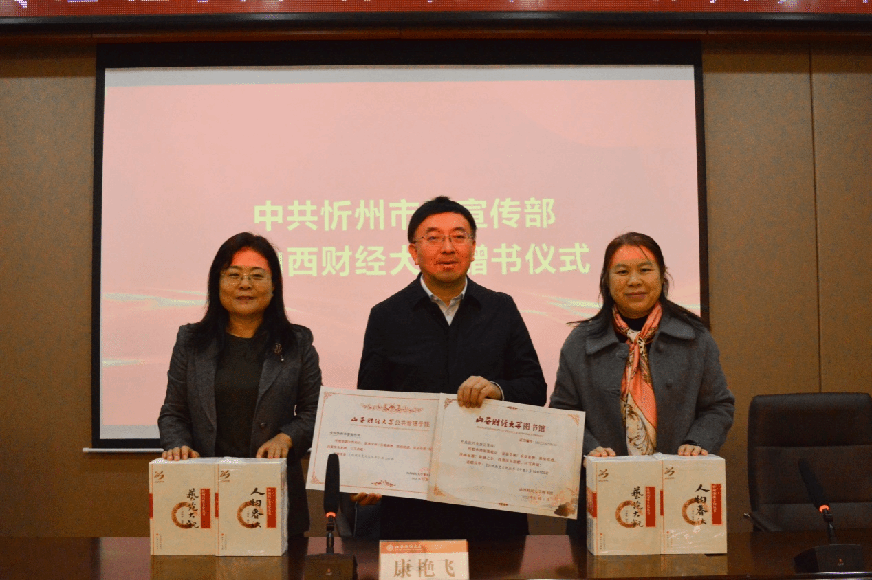 今年以来,437bwin必赢国际官网按照学校的校地合作战略部署,主动深化务实合作,在学院承担忻州市宣传思想文化系统干部培训期间举行本次赠书活动,是双方深化合作的重要环节。本次所赠书籍为我校研究忻州独特的地域历史文化提供了重要史料,为挖掘其历史价值,讲好忻州故事提供了重要素材。