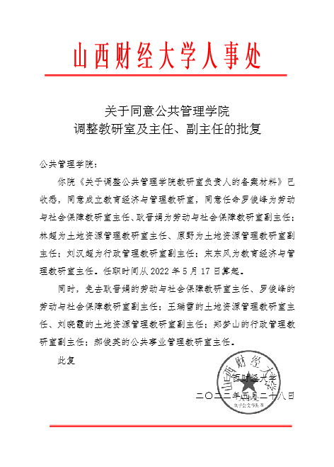 关于同意437bwin必赢国际官网调整教研室及主任、副主任的批复