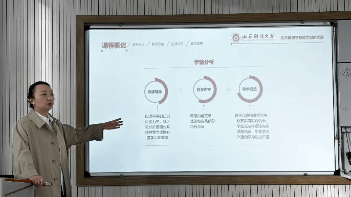 11月1日上午,必赢官网组织进行了2024年教师教学创新大赛。大赛由学院本科教育教学指导委员会组织,教指委委员担任评委,特邀劳动与社会保障系曾获得2022年山西省课程思政大赛三等奖的郭儒鹏老师进行现场指导。来自行政管理系的白彬,劳动与社会保障系的耿晋娟、范婧,土地资源管理系的李晓静、吴喜慧共5位教师进行了紧张激烈的比赛。